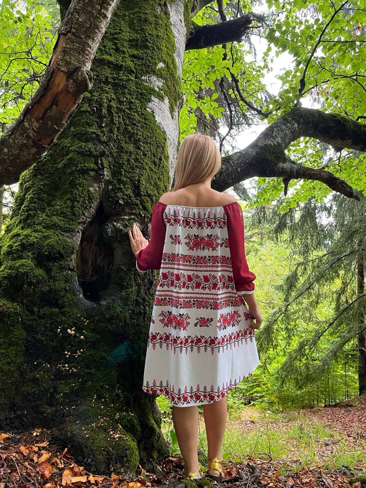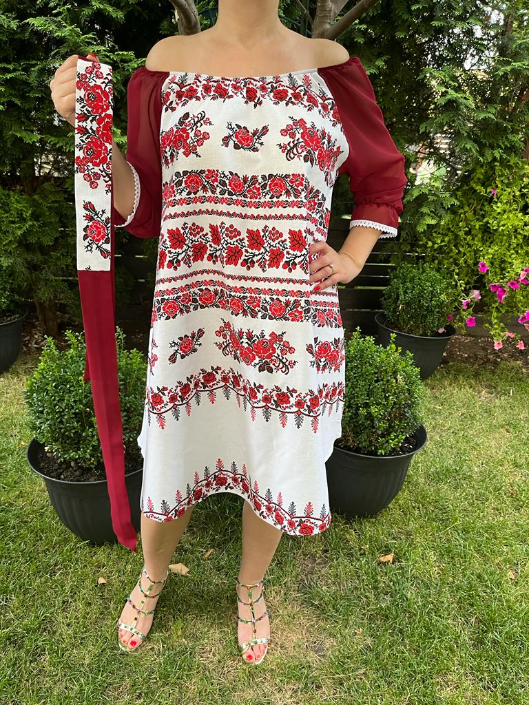 Rochie din panza,vaporoasa si eleganta, lungime medie, croi tip A ce avantajeaza orice silueta