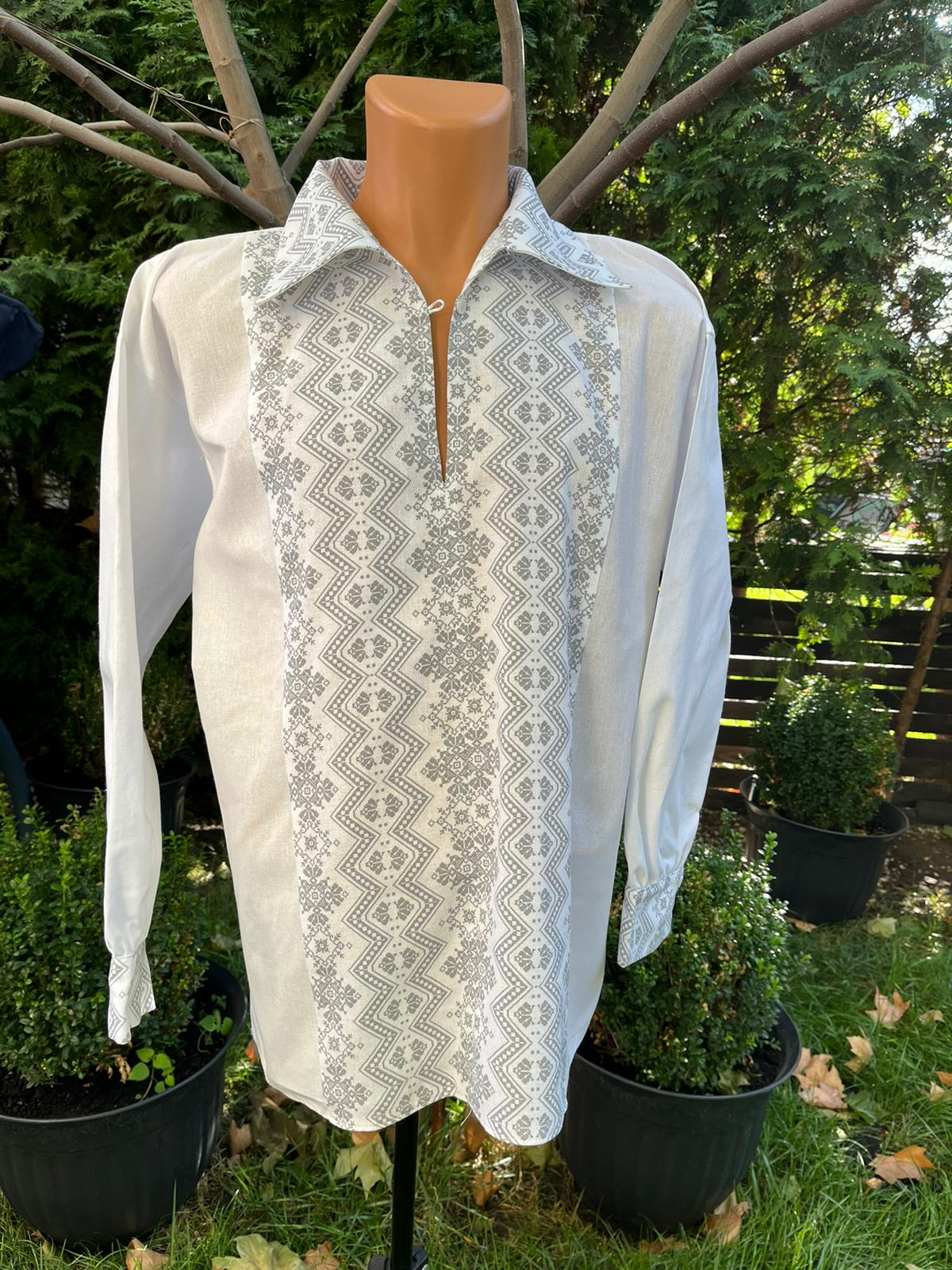 Ie alba din panza cu motive traditionale, potrivita pentru orice ocazie.