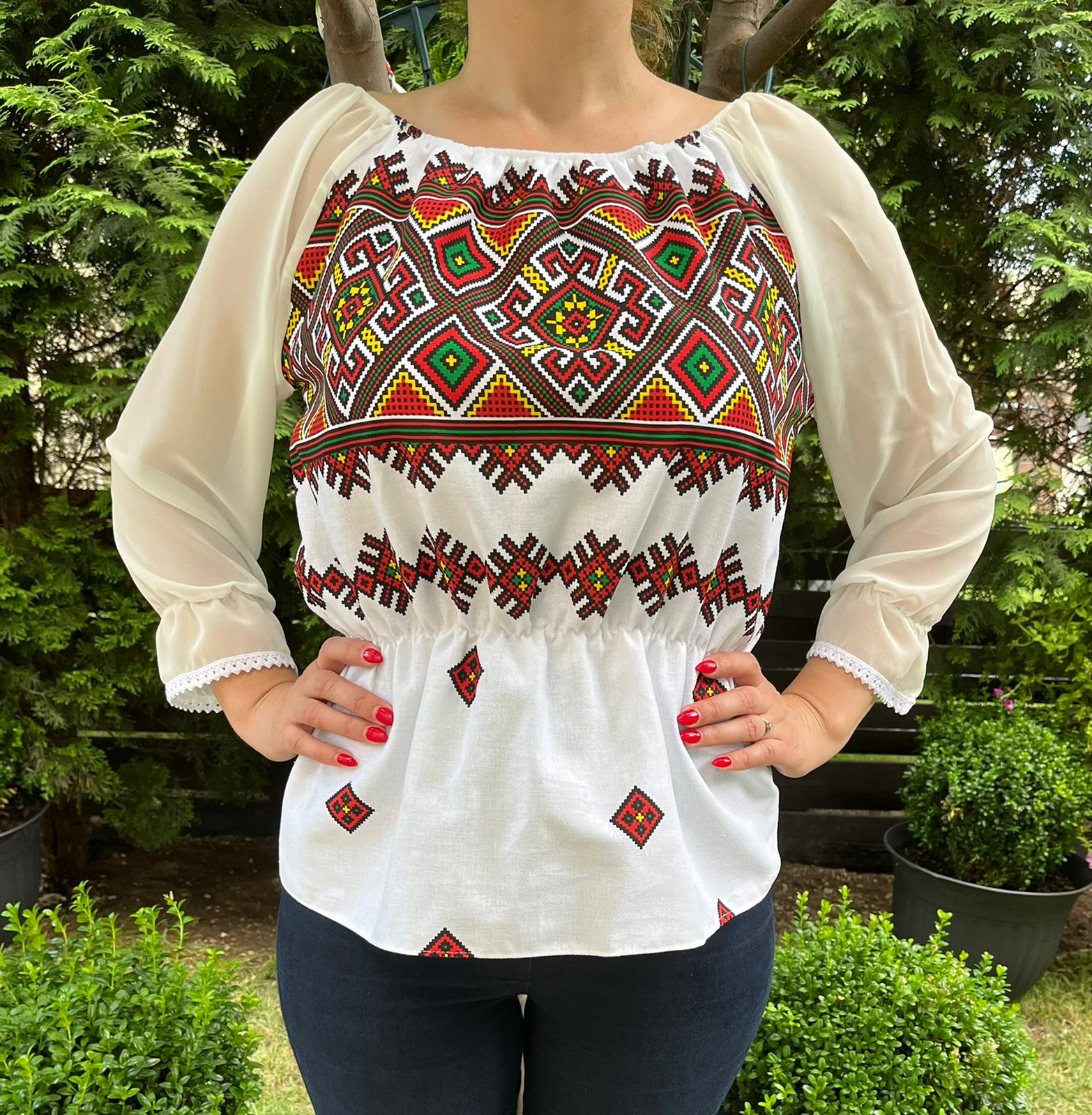 Ie din panza cu motive traditionale ale portului romanesc, potrivita pentru orice ocazie.