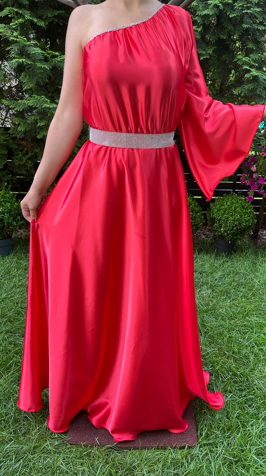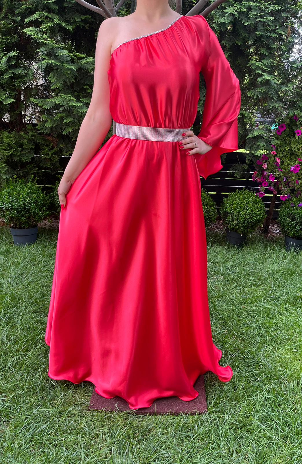 Rochie eleganta din satin matasos, vaporoasa, perfecta pentru orice ocazie speciala.
