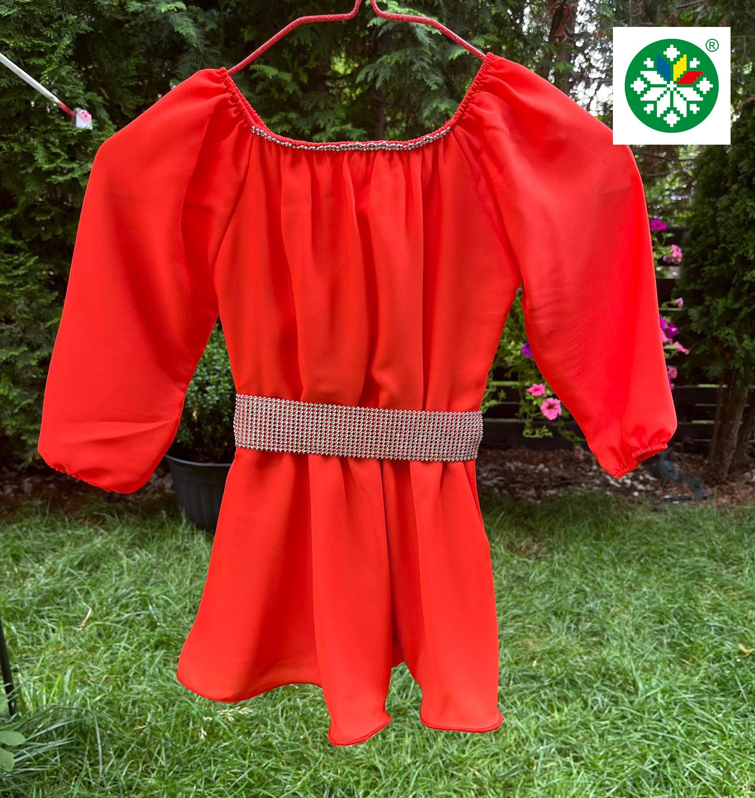 Rochie fetite din voal, eleganta si vaporoasa, accesorizata cu strasuri.