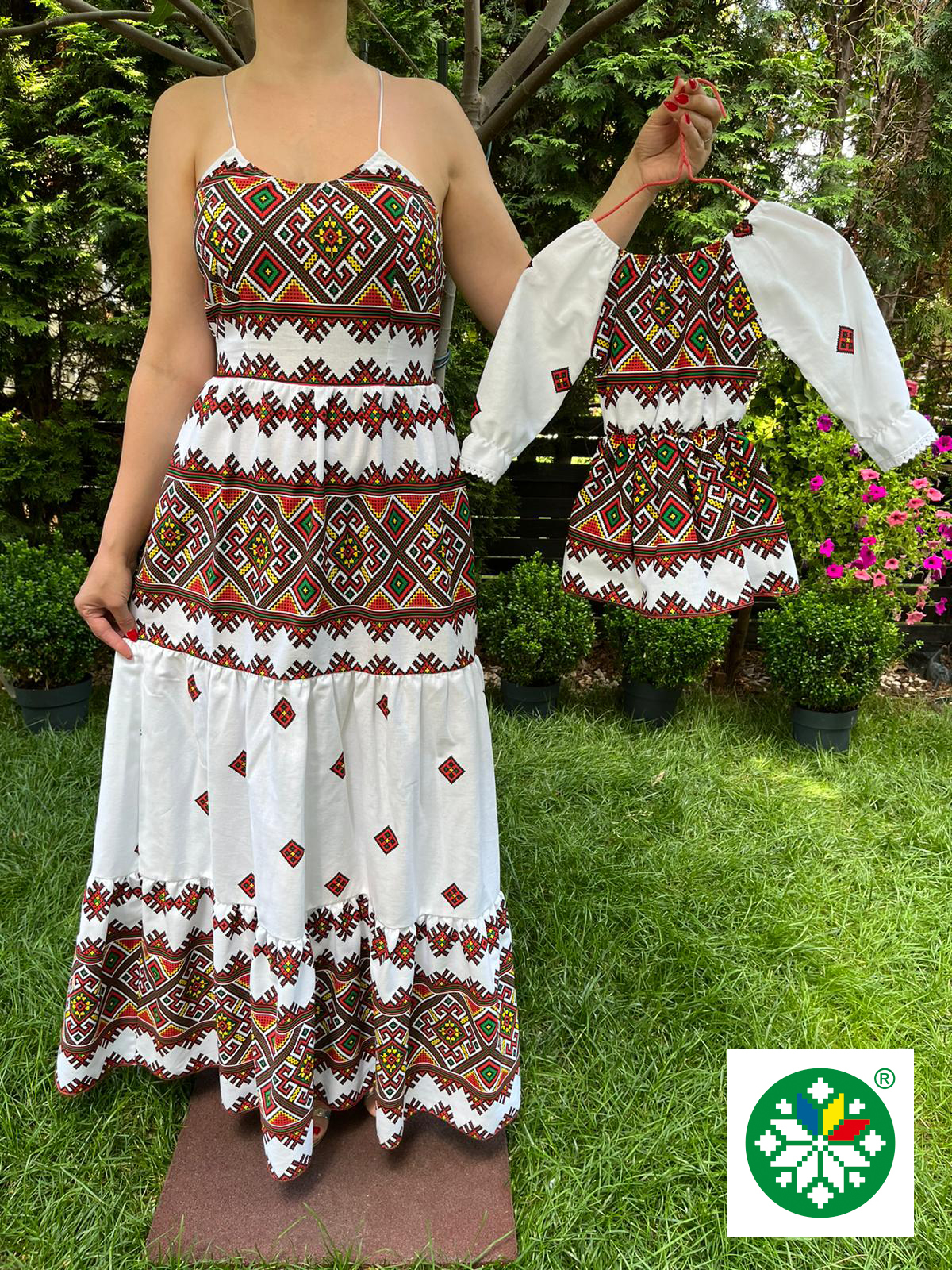 Set rochite mama - fiica din panza, cu motive traditional romanesti.