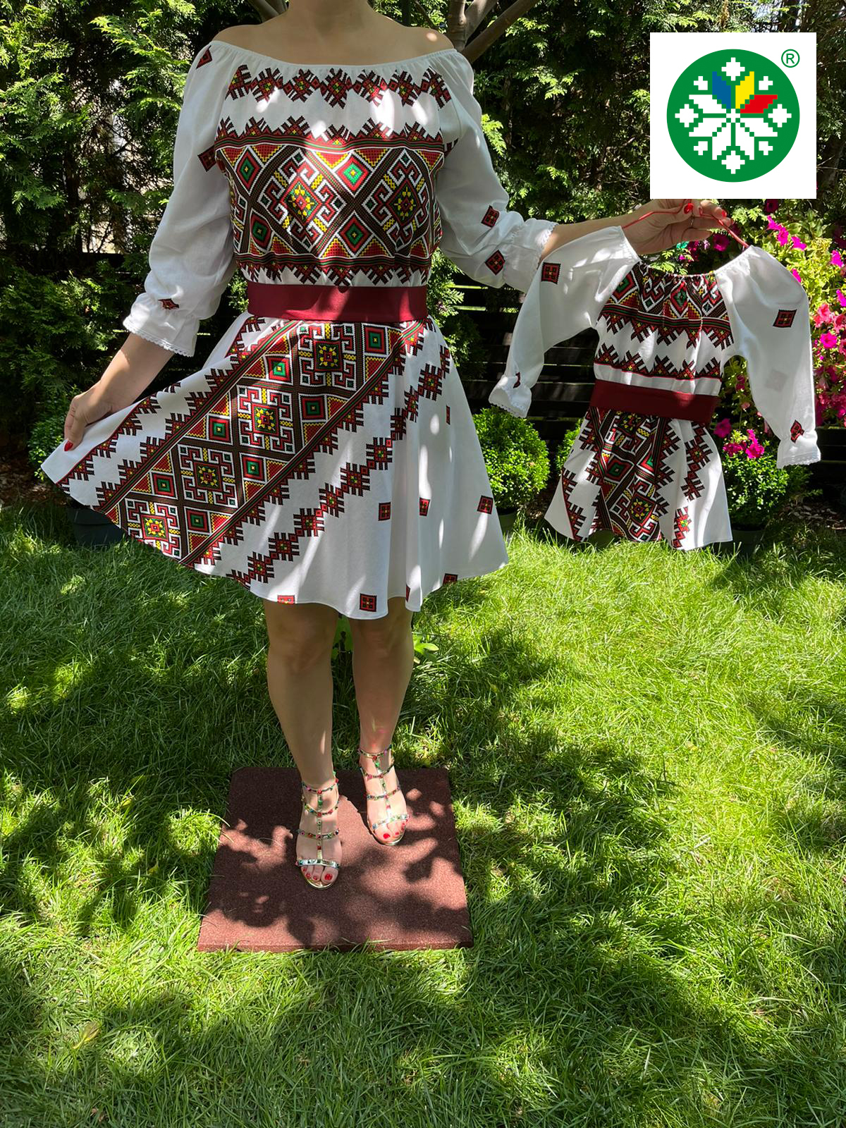 Set rochite mama - fiica din panza, cu motive traditional romanesti.